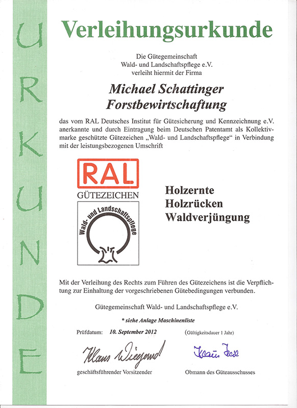 Meisterbetrieb Schattinger Forstbewirtschaftung.